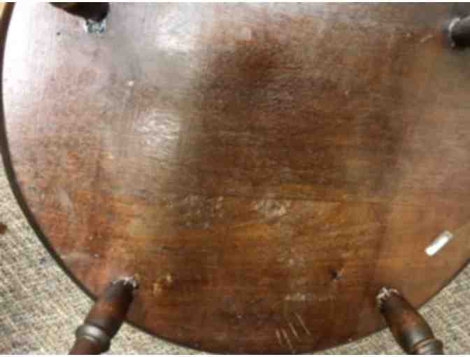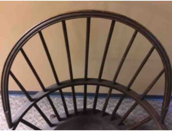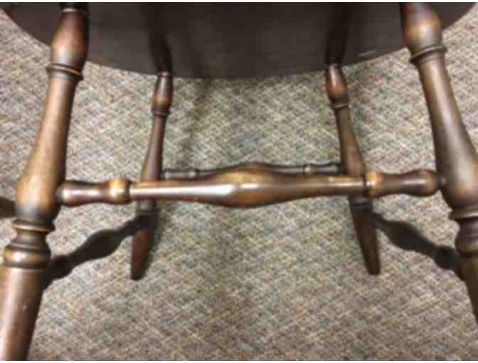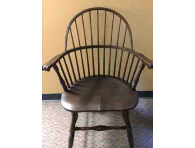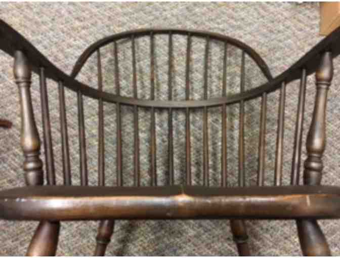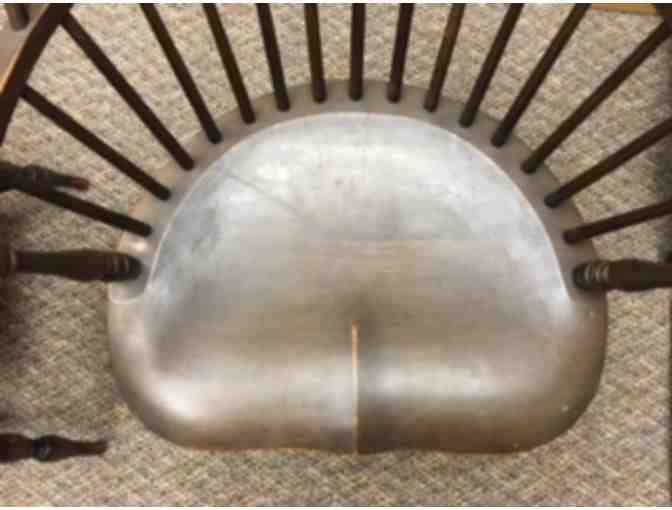 This Windsor chair from S. Karpen & Brothers is a very elegant, stately chair. The chair has a rush seat and a dark wood finish. Very solid, nothing loose. The wood on the chair is in excellent condition. The rush seat is tight and comfy.