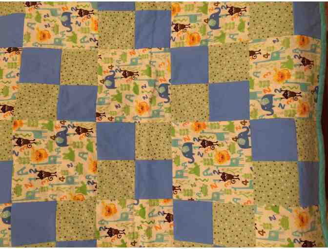 Monkey's - Elephants - Turtles and Frogs!!! Hop to it with this adorable hand sewn baby blanket. Cuddly soft and fun for your little one.
