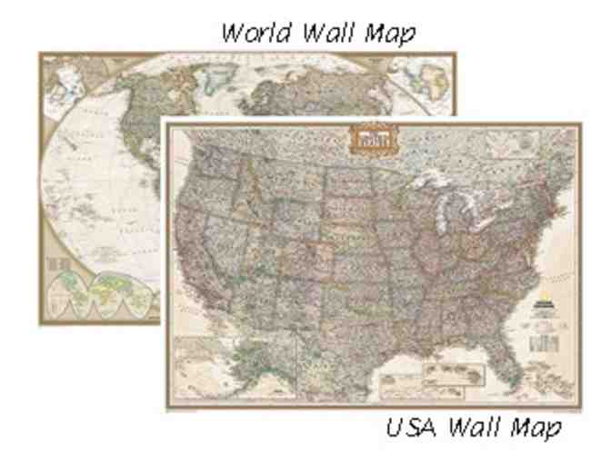 This Executive World and USA wall map set combines classic antique-style cartography with fully updated geographical representation.