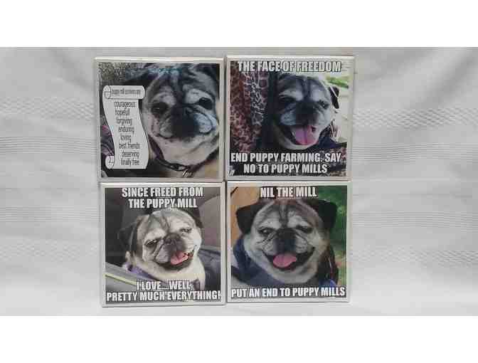 4-piece coaster set featuring Eleanor. Each coaster is a 4 X 4 white tile with felt on the back.