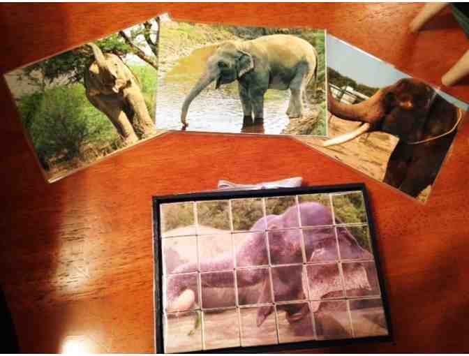 About the Artist: This photo picture-cube puzzle was created by a Wildlife SOS supporter who wanted to make a custom gift for the auction. She used photos of the elephants rescued by Wildlife SOS and living at the sanctuaries including Raju, Suraj, Bijli, Chanchal, and Lakshmi. She took our photos and transformed them into this beautiful puzzle!