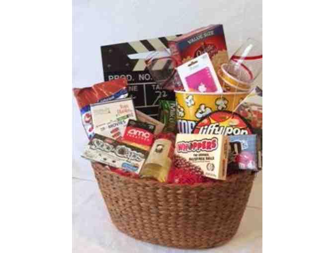 Enjoy a night on the town at AMC Theater gift card valued at $50. Also included is $30 iTunes gifts card. Prefer a night in, on the couch, with a great movie and all the goodies that come in this Movie themed gift basket? We've got you covered! This movie basket is filled to the brim with delicious treats to keep mom, dad and the kids happy! This basket includes plenty of snacks for kids and a special bottle of wine for parents.