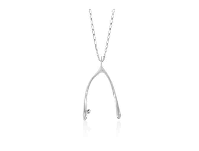 Sterling silver wishbone pendandt with 2mm diamond on a 24" heavy figaro chain.