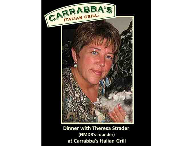 Dinner with Theresa Strader at Carrabbas Italian Grill (2 people, plus Theresa). Enjoy a wonderful dinner at Carrabba's Italian Grill (located in Colorado Springs, CO) with National Mill Dog Rescue's founder Theresa Strader.