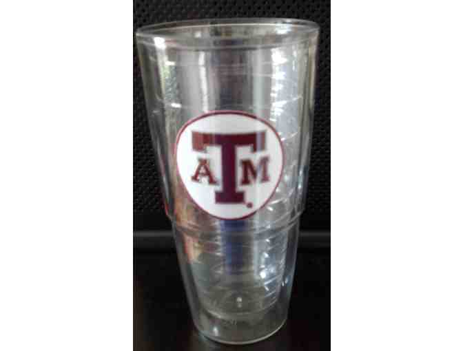 Texas A&M Insulated Tumbler, pre-owned, great condition. Marked with logo on front. Dishwasher safe. Measures 7 1/2 inches tall, almost 4 inches across top.