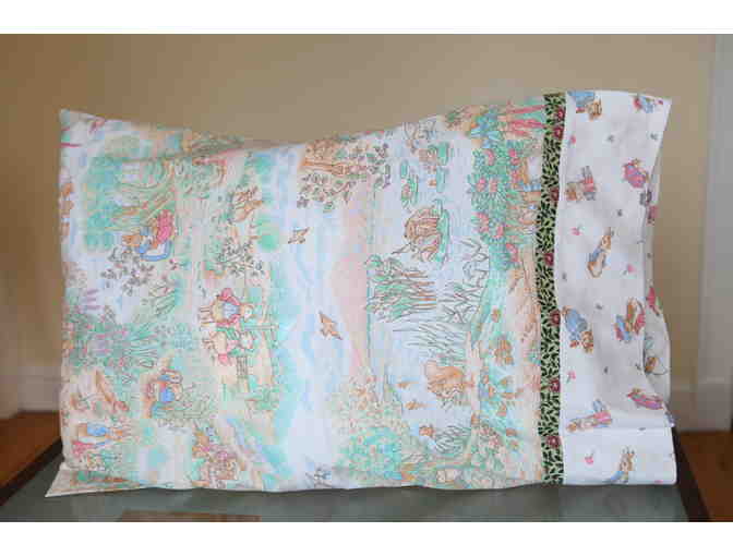 One handmade, pastel colored children's "Beatrix Potter" pillowcase.