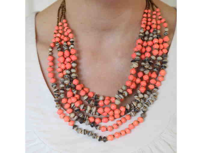 31 bits "Odette Layers" necklace handmade of paper beads by women in Uganda.