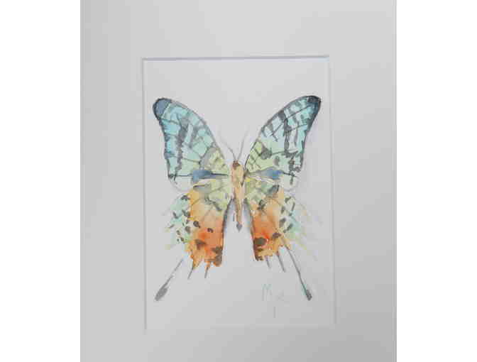"Sunset Moth" watercolor on paper, matted to fit a standard 8" x 10" frame. Sunset moths are considered by many to be the most beautiful of all moths and butterflies. Celebrate the sublime artistry of mother nature with this one-of-a-kind original watercolor painting by artist and FTCNS parent Maggie Vandermeer.