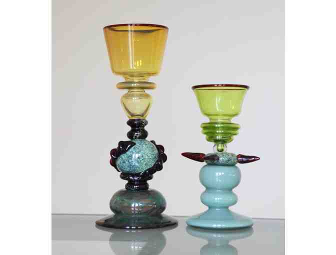 Stacy Kvet - 2 Whimsical Glass Votive Candle Holders