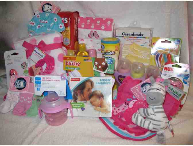 Free registration at Creative World (a $75 value) + an infant girl gift basket. Basket contains Huggies, bibs, pacifier, wipes, receiving blankets, lullabies CD, bottle brush, socks, shirt and plush toy.
