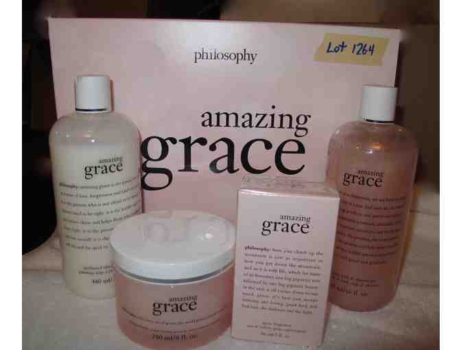 Philosophy Amazing Grace 4-pc Fragrance Gift Set includes showergel body scrub, bidy creme, and spray fragrance. Donated by Ginny Ando, a friend of the Lions.
