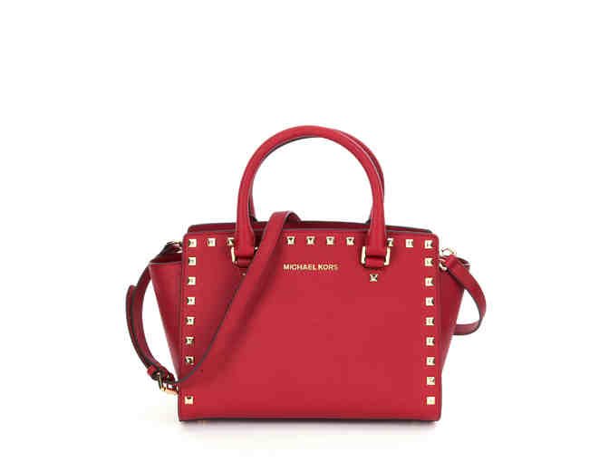 Michael Kors Selma Studded Medium Convertible Satchel in Cherry Red