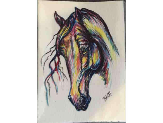 ACEO (Art Card Editions and Originals) Description - Original Horse Head Size: 2.5 x 3.5 Medium: Watercolor on watercolor paper Artist: Rebecca Hendry Year: 2007. One of a kind!
