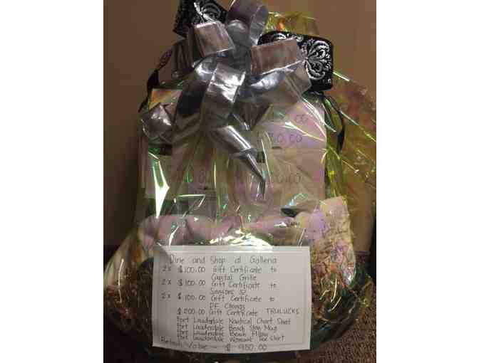 2x $100 gift certificates to Capital Grille/2x-$100 gift certificates to Season 52/2x-$100 gift certificates to PF Changs/$200 gift certificate to Trulucks/Ft. Lauderdale Nautical Chart Sheet/Ft. Lauderdale Beach Mug/Ft. Lauderdale Beach Pillow/Ft. Lauderdale Woman's t-shirt