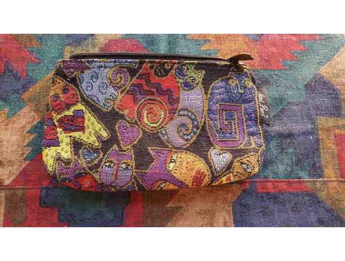Adorable Cat themed, with zippered pouch. Great for makeup, approximately 9 inches width! Gently used.