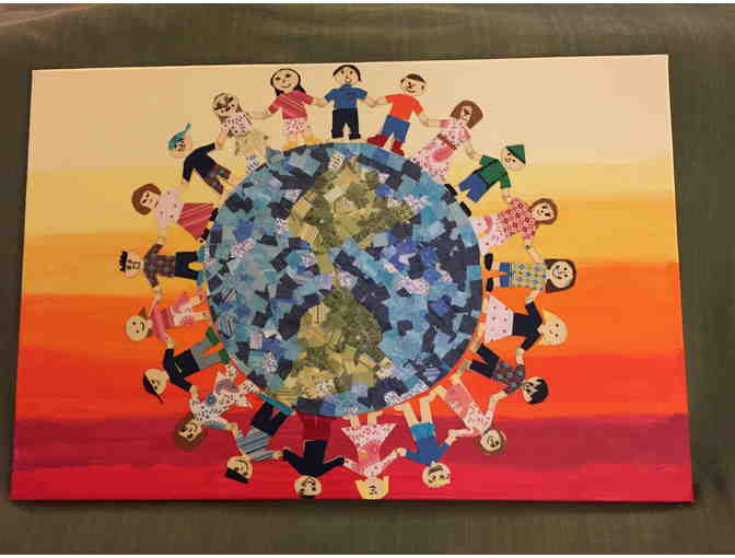 This Artful Collaboration piece was created by Mrs.. Jay’s Second grade class. Students in this grade focus on the world they live in by identifying and locating continents and oceans. We enjoy reading about the first explorers of our world, the early Americans, and the famous people who taught us courage and determination. Students are encouraged to appreciate others because among all of us there is greatness. Together we can help shape our world.