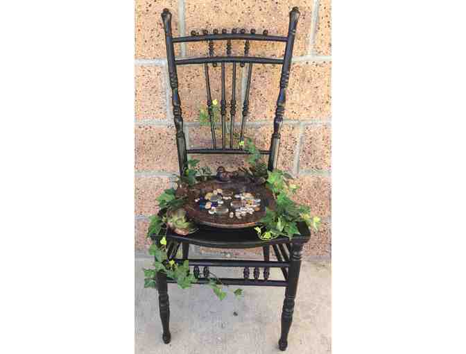 A perfect addition for any garden! A previously loved chair turned into garden art and bird bath. Each child has signed a rock too.