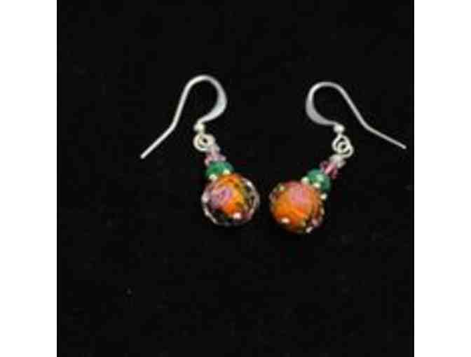 Stacy Kvet - Handmade Orange Glass Earrings With Pink Rosebuds