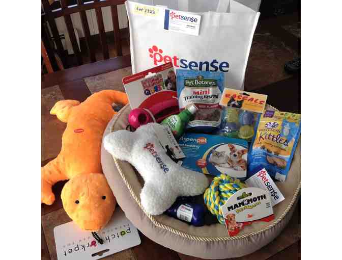 Gift basket of pet supplies donated by Gail at Pet Sense, 25 Robert Dr #1, Easton, MA.