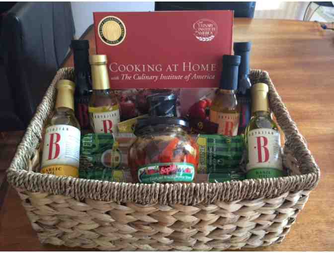 This Basket includes: Cooking At Home - Create your own Food Network series with this basket. You may become the next Iron Chef. -The Culinary Institute of America`s Cooking At Home Cookbook -garlic olive oil (2) -basil olive oil -Italian herb wit Yes