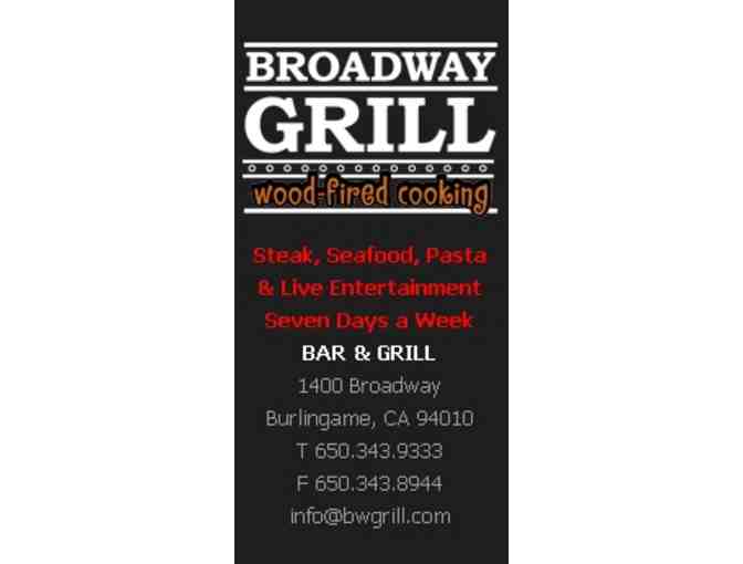 Gift certificate for dinner for two atBroadway Grill. www.bwgrill.com