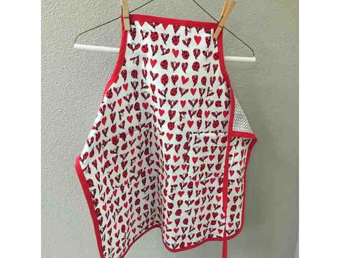 From RDS's own Barbara Bowman, enjoy this handmade child's apron in a ladybug and hearts cotton print material. Package includes one batch (2-3 dozen) home-baked chocolate chip oatmeal cookies to be delivered at a mutually agreed upon time and place.