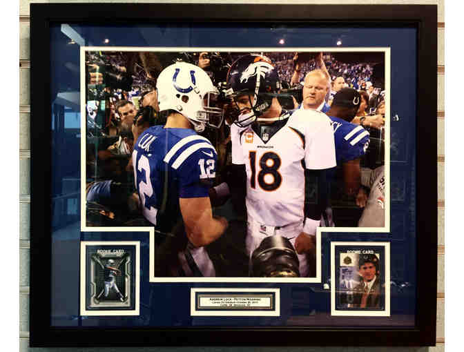 Andrew Luck & Peyton Manning Framed 16x20 with Rookie Cards. Comes with Certificate of Authenticity.