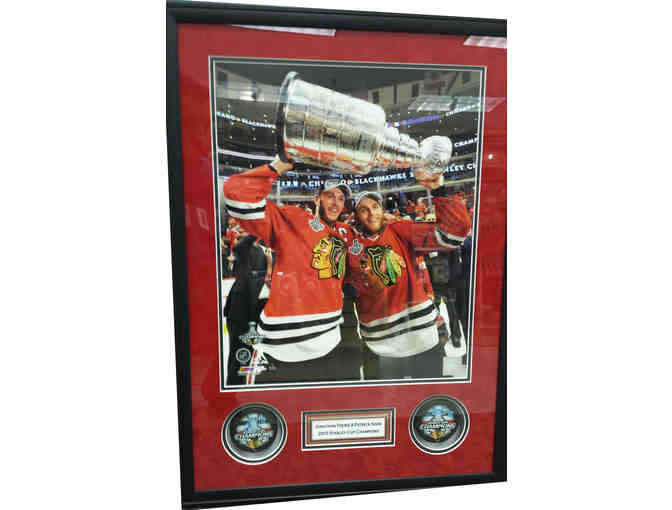 Jonathan Toews & Patrick Kane Autographed Pucks Shadowbox. Comes with Certificate of Authenticity.