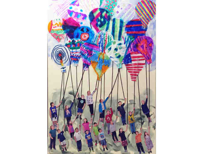 This Artful Collaboration piece was created by Mrs. Gamba’s Third Grade class. Each student in our district is encouraged to share their ideas and thoughts in all subject areas, and to be open to other’s ideas and thoughts. Students in third grade read many biographies and learn how ideas of others helped change our world. People like Watt Disney, Dr. Martin Luther King, Jr. and Steve Job, followed their dreams. Anyone of our students can have a dream that could influence our future. In this piece of art students designed the balloon that will carry them off to their future dream.