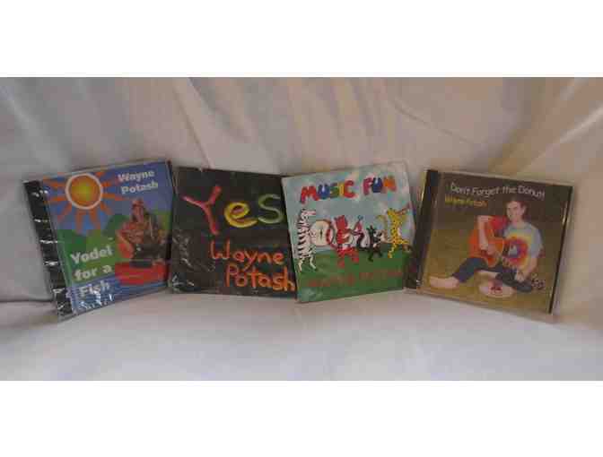 Four CDs of children's music donated by Wayne Potash and Happy House Records. Includes `Yes`, `Don`t Forget the Donut`, `Yodel for a Fish`, and `Music Fun`