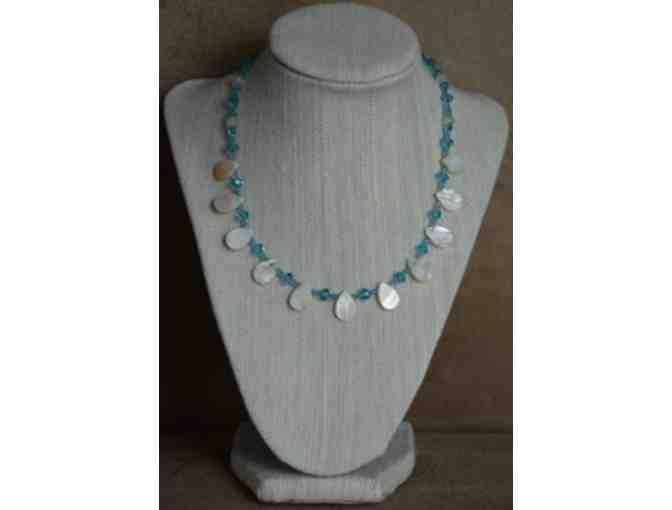 Hand made sea green and shell necklace. Made and donated by Baywood's, Carla Murphy.