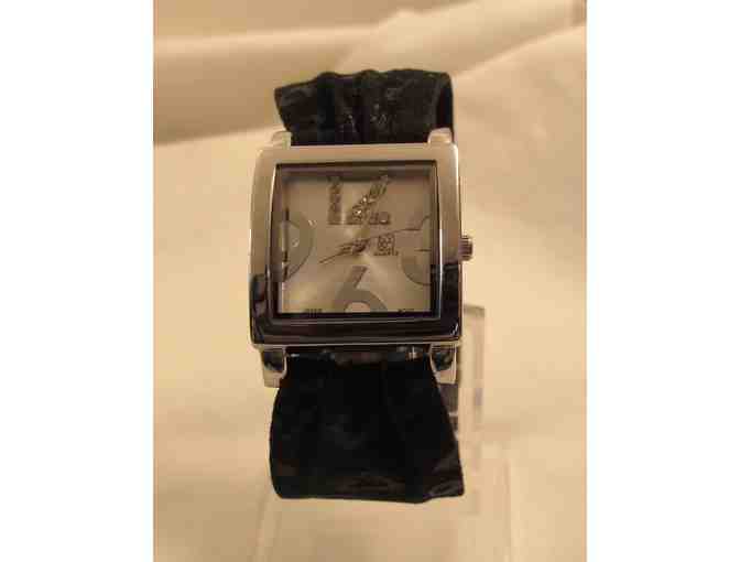 New, quartz watch with square face and large digits at 3, 6, 9, and 12.