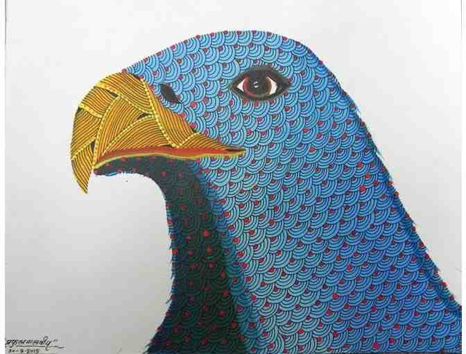 This is artwork of a traditional tribal style called Gond art, by the Gond tribals of Madhya Pradesh. The Gond tribe is considered among the largest tribe of Central India.