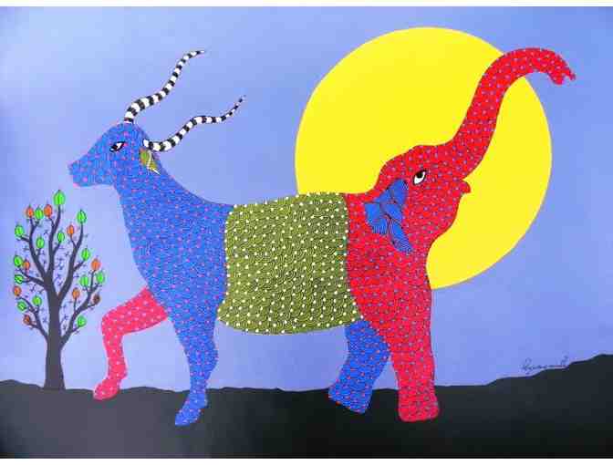 This original artwork is a traditional tribal style called Gond art, by the Gond tribals of Madhya Pradesh. The Gond tribe is considered among the largest tribe of Central India.