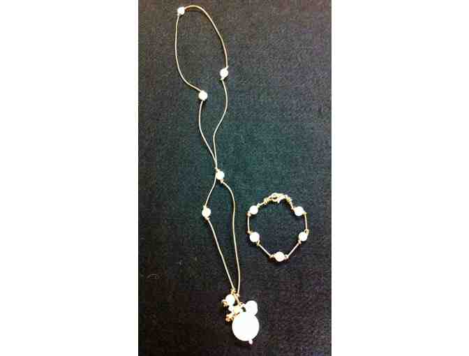 Handmade Mother of Pearl, Swarovski Crystal and Pendant Necklace and Matching Bracelet