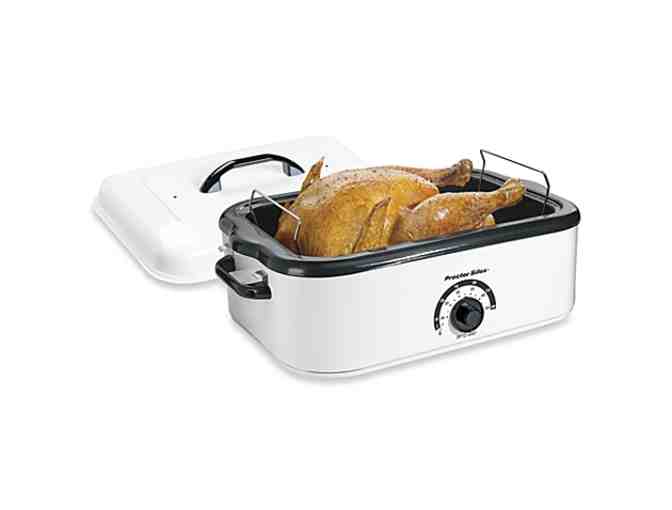 This high capacity roaster oven bakes, roasts and cooks a variety of foods when stovetops and ovens are already in use. Its attractive design seamlessly goes from kitchen to buffet for easy serving.