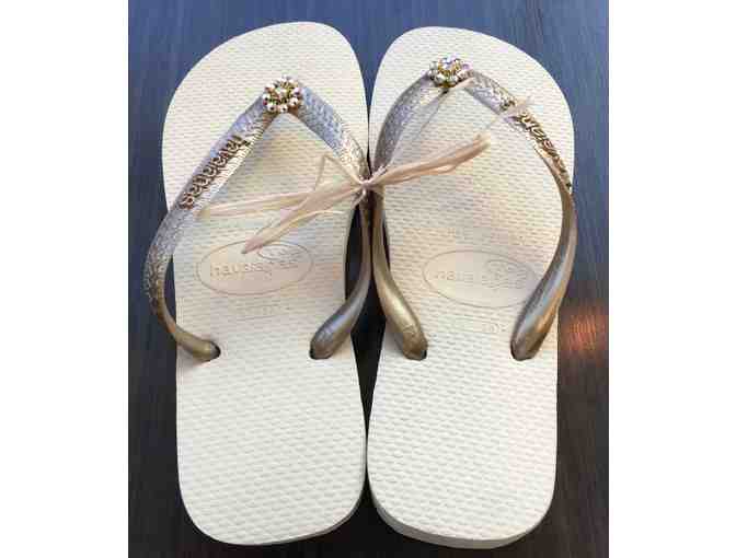 Havaianas Metallic Sand Flip Flops with Crystals Size 6 1/2 - 7 1/2