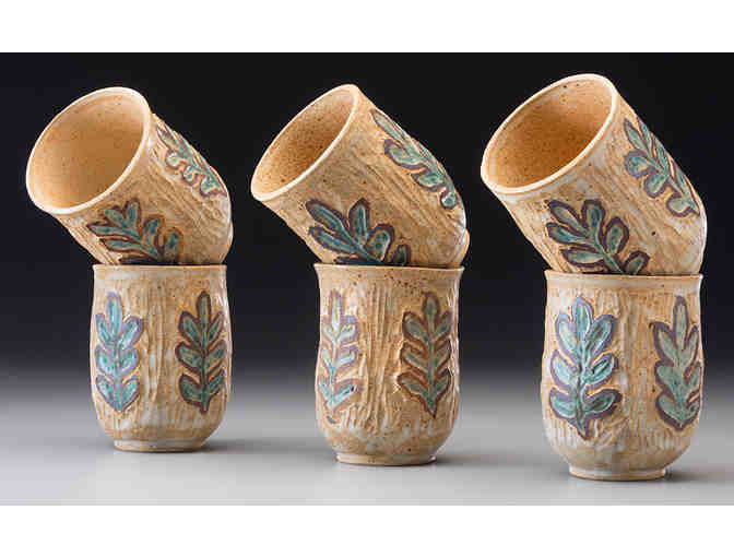 Stoneware tumblers with carved images Sheila Staubus