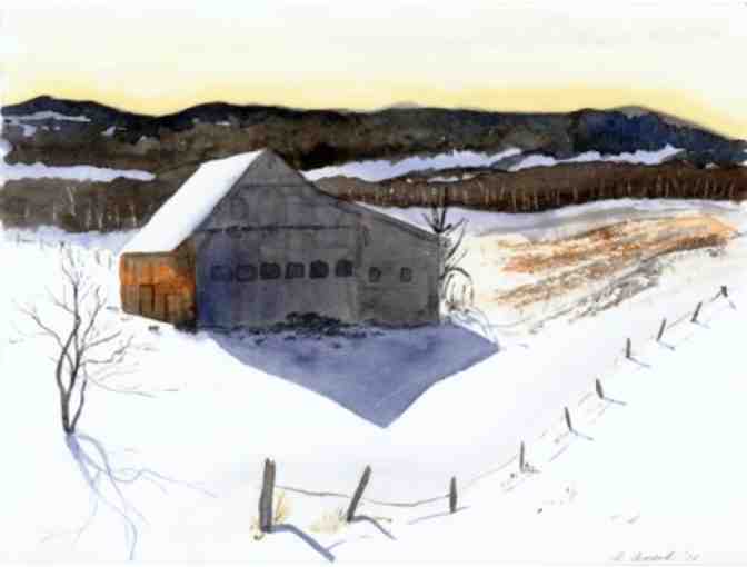 Vermont winters are long and cold, but they are filled with moments of magic like this one, when the sunset plays on the sides of old barns and the shadows grow on the snow. My husband and I were celebrating our anniversary at an inn next door to this farm. I captured the moment in my sketchbook and finished the painting in my studio. This is an archival watercolor print (giclee) made with the finest inks on heavy watercolor paper. The edition is limited to 50 prints. The image dimensions are 10" X 13", sized to fit a 16" X 20" frame or to be custom framed to the size you wish. While I will not be making more than 50 prints in this series, I do retain all copyrights to this image.