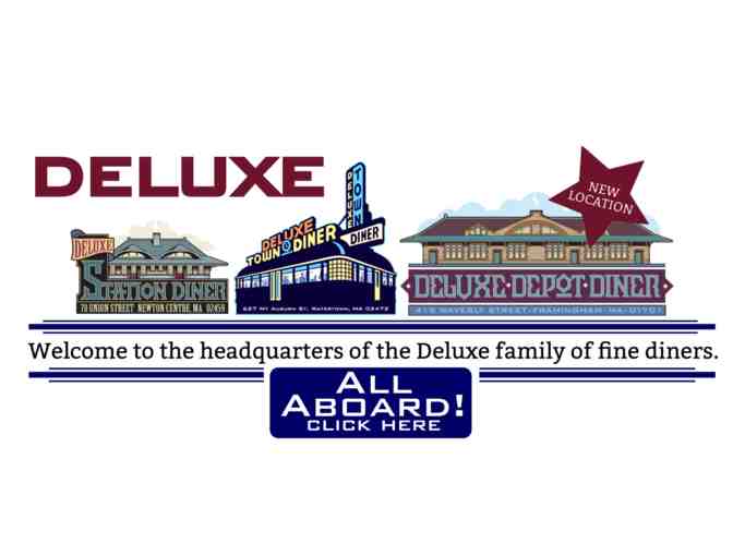 Deluxe Depot Diner is another significant H.H. Richardson train station dating from 1885. Located in Framingham at the intersection of Route 135 and 126, this incredible National Historic Site serves all of Metrowest with a menu similar to our other restaurants, featuring casual 'diner' food for breakfast all day, lunch, and dinner, as well as a full bar. Interior decor by Mark Fisher, once again, plays on "post modern Victorian whimsy" for ambiance. Adults and children alike will like the two trains passing by.
