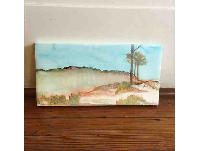 "Horn Island" is a mixed media painted wrapped around canvas. It measures 6"x12" and was created using alcohol inks and colored pencils.