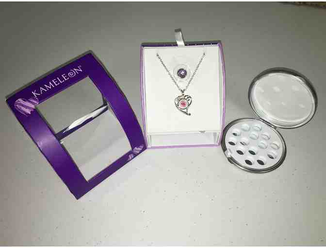 Kameleon gift set = necklace, 2 pop charms, and compact carrying case.
