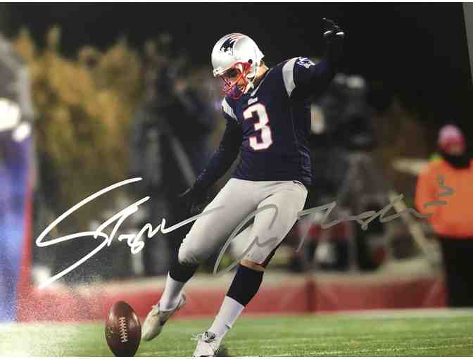 Add this signed 10X8 photo of New England Patriots player Stephen Gostkowski to your sports memorabilia collection. Gostkowski was drafted by the Patriots in 2006 to be a placekicker. Since then, he has been the most accurate kicker in Patriots history.