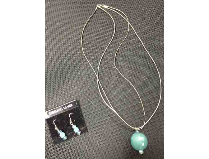 Jade, Sterling Silver and Swarovski Crystal Necklace and Earrings Set
