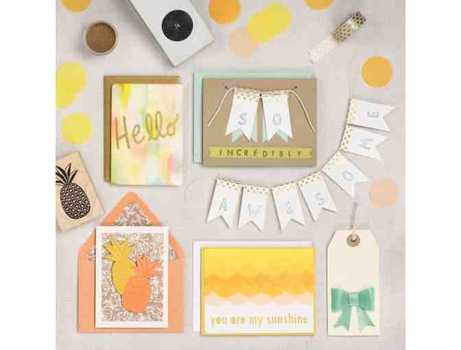 Are you looking for some creative playtime to brighten your day? Invite your friends and join Paper Source for our card making workshop. We will make a set of cheery cards and teach you how to stamp, emboss, make paper bows, line envelopes and more!