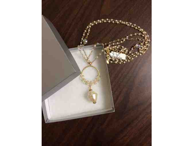 Crystal and pearl bead long necklace in a Neiman Marcus box