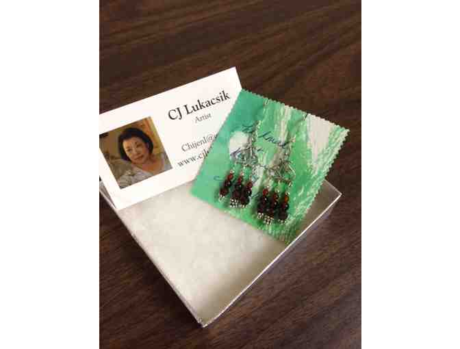 Artist Chijen Lukacsik-designed Asian garnet and sterling silver pendant earrings