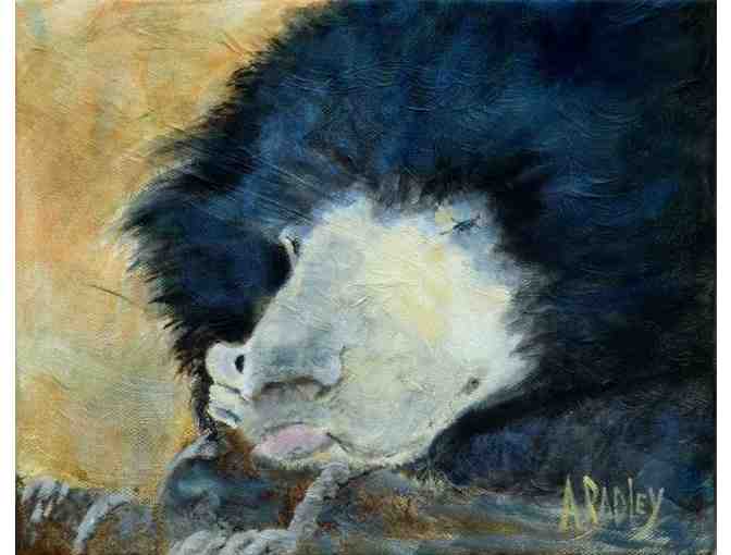 Damru was rescued by the anti-poaching team of Wildlife SOS from a small village in Uttar Pradesh when he was a tiny 4 year old sloth bear. He is now one of the healthiest bears in our rescue center, weighing 265 pounds. You might not guess it from the painting, but he is also an excellent tree climber.