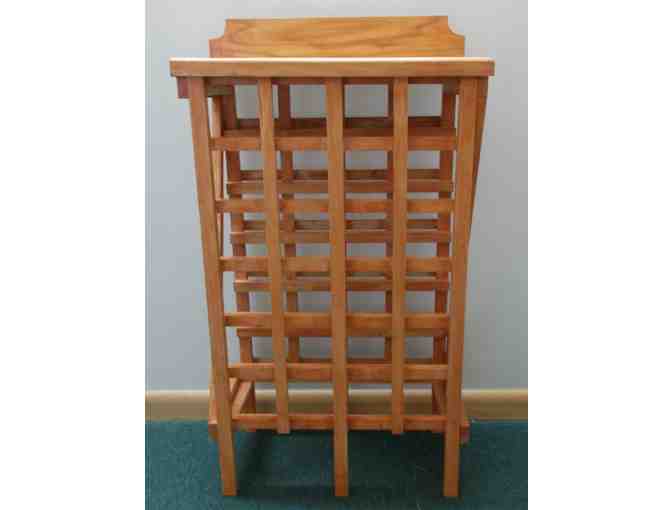 Sturdy, handcrafted wooden wine rack finished with light red maple stain will store 24 bottles of your favorite wines.