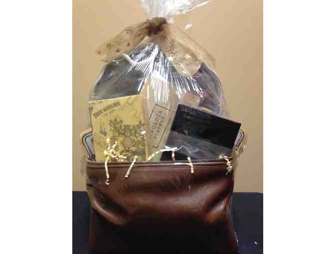 Is the man on your life, always on the go jetsetting from one destination to the next? Show your appreciation for him by giving him this wonderful traveller's basket. Contents include: A cushy travel neck roll, eye mask, and socks; True Religion cologne, John Varvaros cologne, Coach leather shaving kit with travel products and coasters.